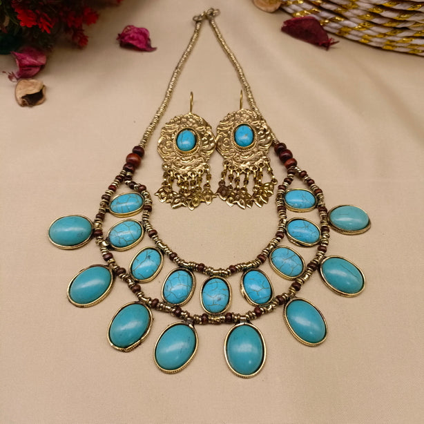 Kuchi Turquoise Antique Necklace Set – Handmade Afghan Jewellery